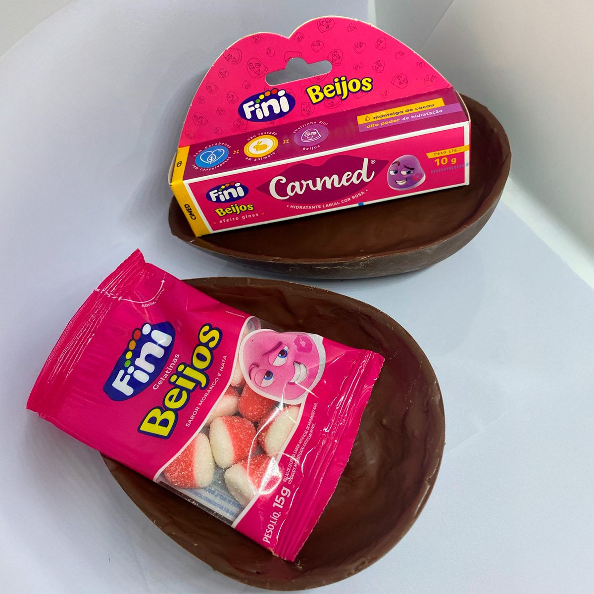 O queridinho das meninas; irresistível casca de chocolate ao leite trufada com brigadeiro fini beijos, e a outra metade casca de chocolate branco, dentro uma surpresa incrível da Carmed e um pacote de bala Fini, tornando a experiência ainda mais divertida e especial para as meninas. Ovo embrulhado.