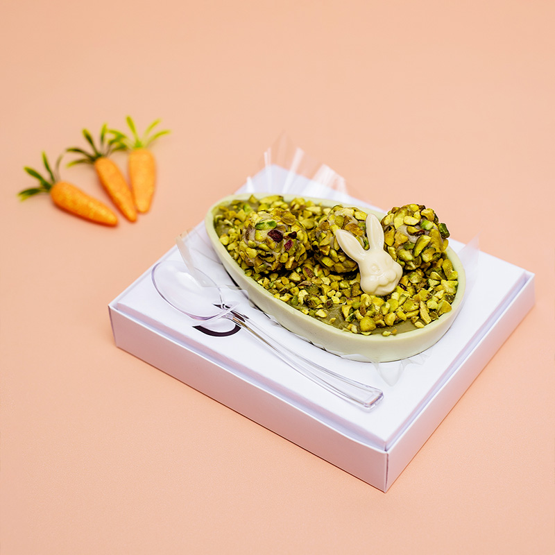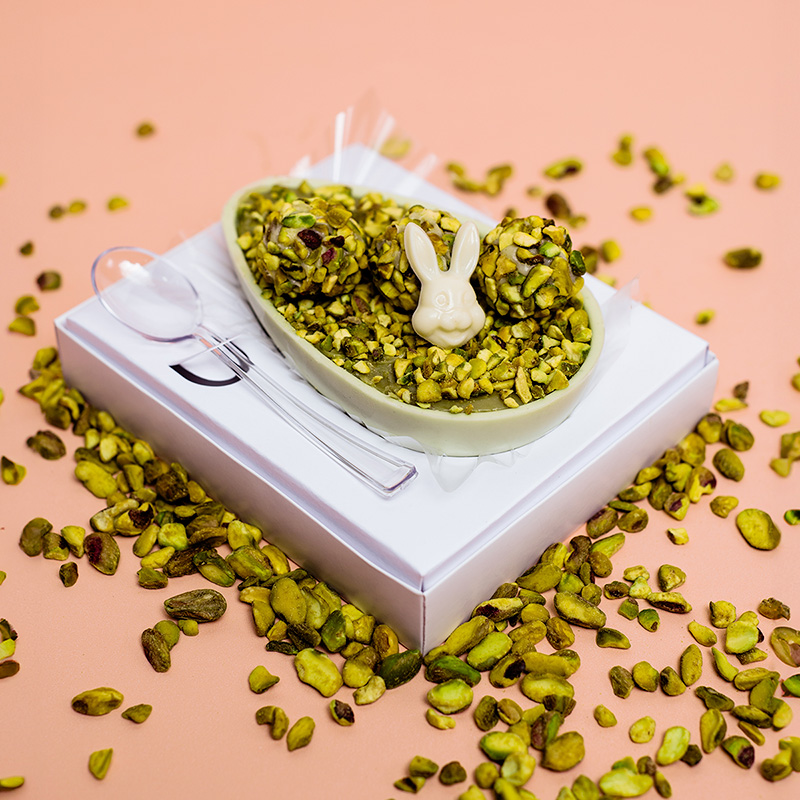 Prepare-se para uma experiência única. Esse sabor tem feito o maior sucesso. Ele combina o sabor do brigadeiro gourmet de pistache, e o sabor tradicional do brigadeiro ao leite; a casca é saborizada de pistache com chocolate branco e na decoração pistache triturada e brigadeiros enrolados com granulado belga.